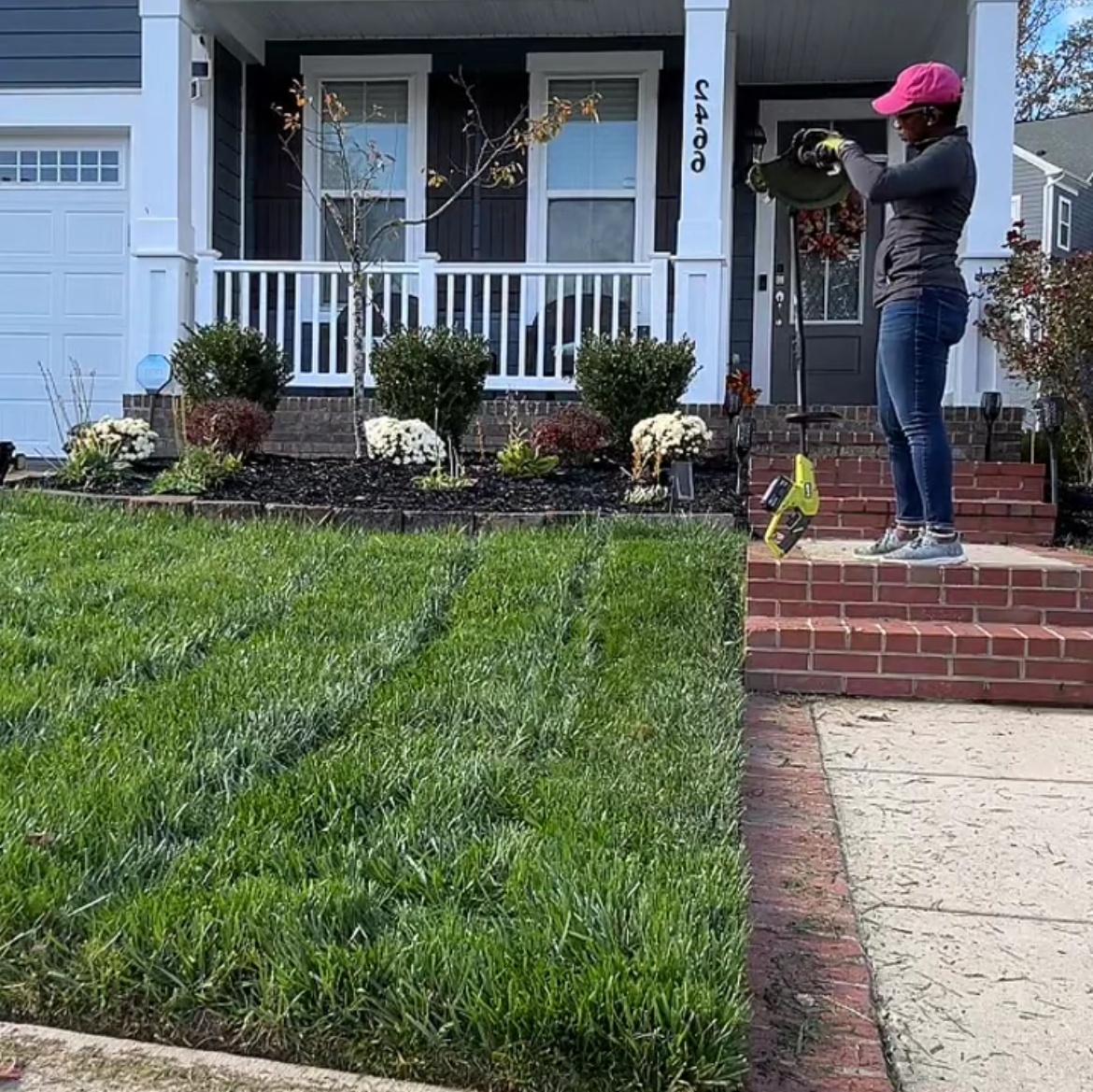 Early results from organic lawn restoration showing thicker turfgrass growth after compost topdressing and biostimulant soil treatments in a Virginia Front yard